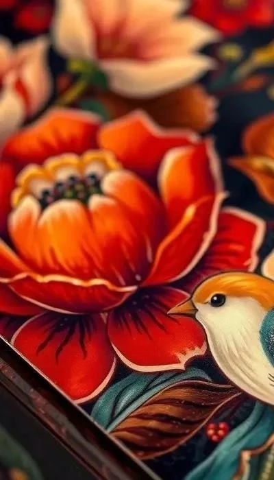- Городецкая роспись: Роспись по дереву, характерная для города Годец Костромской губернии, с использованием ярких цветов и простых форм.