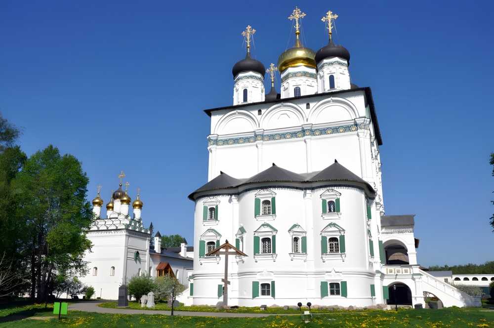 Сохранившееся до наших дней здание – 1692 года постройки. Это образец классической московской архитектуры XVII века: величественный пятиглавый храм, украшенный поясами изразцов, резными полуколоннами, наличниками и карнизами. У храма большие для этого времени окна, поэтому внутри всегда было светло. Иконостас также был резным. Часть икон из его самой старой части сохранилась до нашего времени и сейчас находится в музее им. Рублева в Москве. Росписи храма значительно менялись со временем. Последний раз он был расписан в 1904 году палехским живописцем Н. Сафоновым. Эта же артель потом будет расписывать Грановитую палату в Москве. Нижний храм монастыря перестроен в XVIII веке из усыпальницы Волоколамских князей и монастырских настоятелей. Здесь устроили храм, посвященный самому Иосифу Волоцкому, здесь же находятся сейчас его мощи.