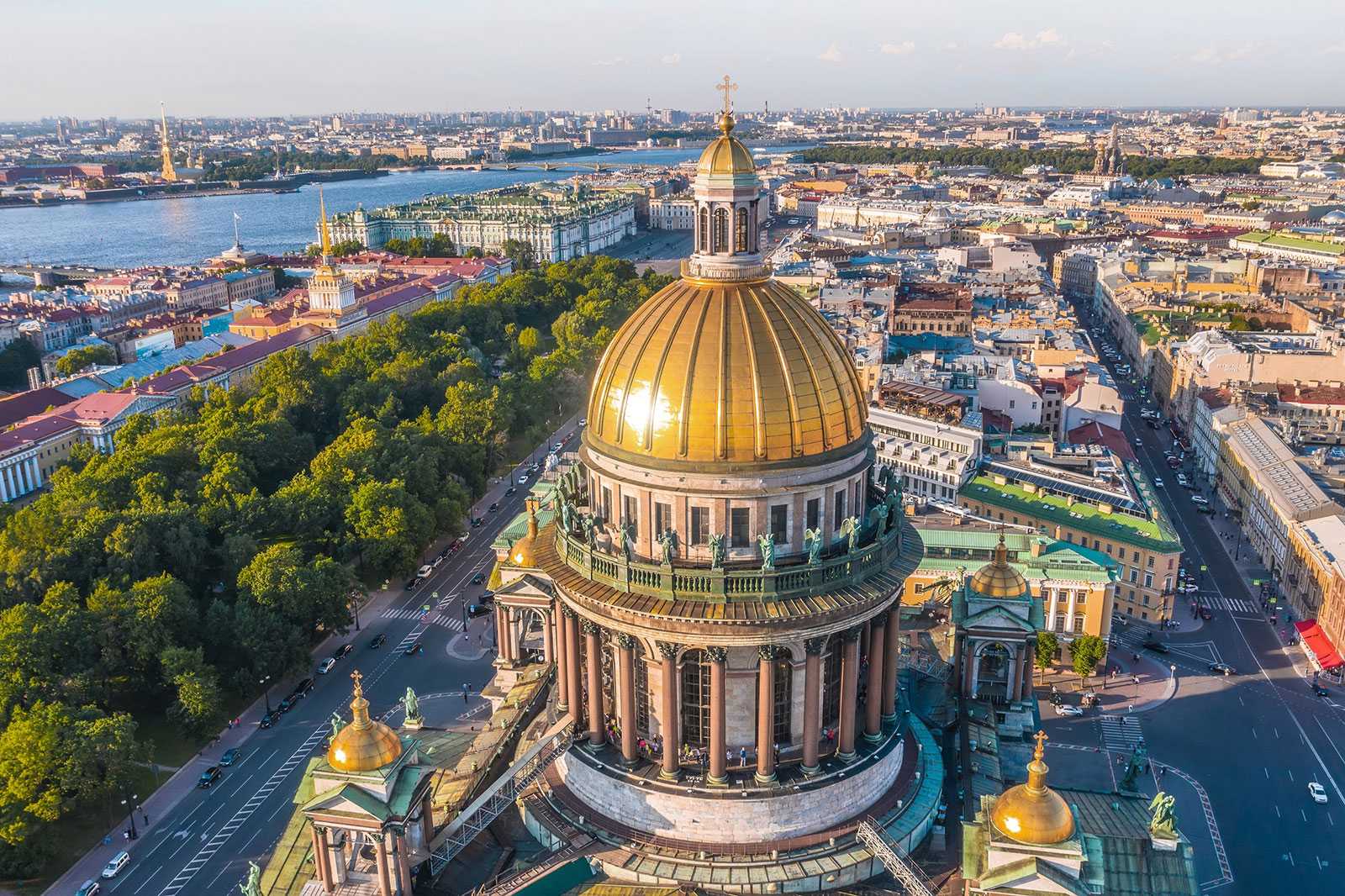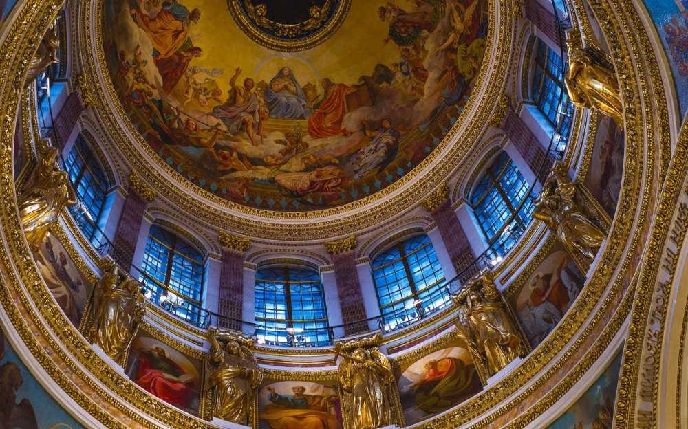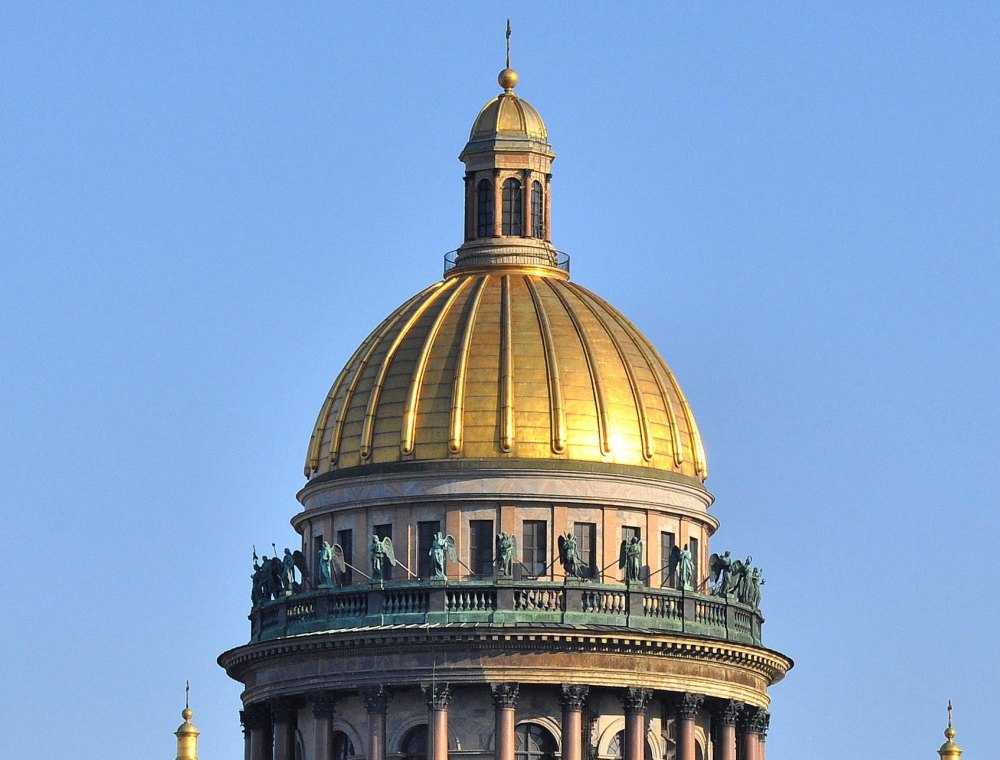 Каждую колонну поднимали вверх по специально разработанной схеме. На золочение колонн потратили 100 кг червонного золота. Колоннада собора – самая высокая обзорная площадка в центре города. Купол собора виден с Финского залива.