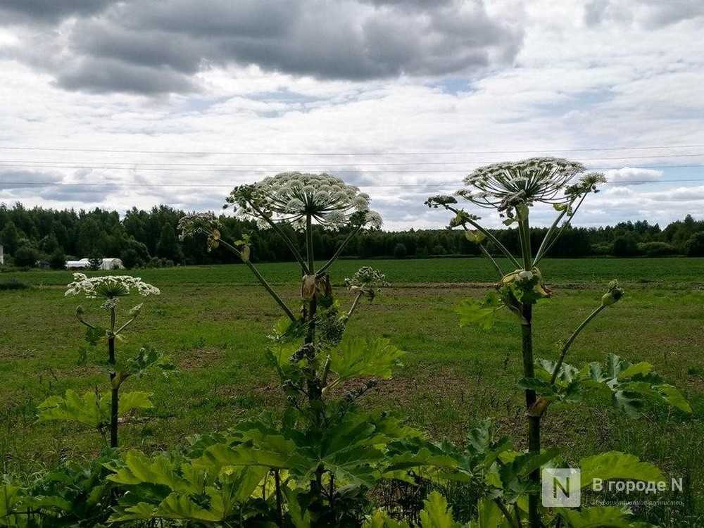 В текущем году за счет средств областного бюджета борьба с борщевиком Сосновского проведена на площади 300 га в 12 районах Нижегородской области: Балахнинском, Большемурашкинском, Ветлужском, Вознесенском, Воротынском, Городецком, Кстовском, Сосновском, Шатковском, Первомайском, Перевозском, Чкаловском.