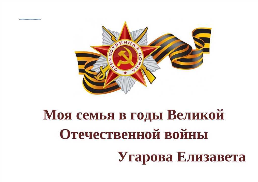 Великая Отечественная война — одна из самых трагических и важнейших страниц в истории России. Это была безжалостная и кровопролитная битва за свободу и независимость нашей родины. Моя семья тоже не осталась в стороне от этой страшной войны, история которой стала неотъемлемой частью нашей судьбы.