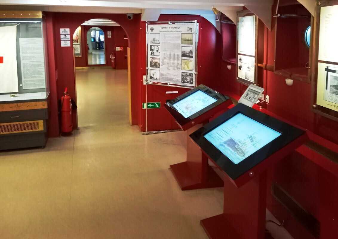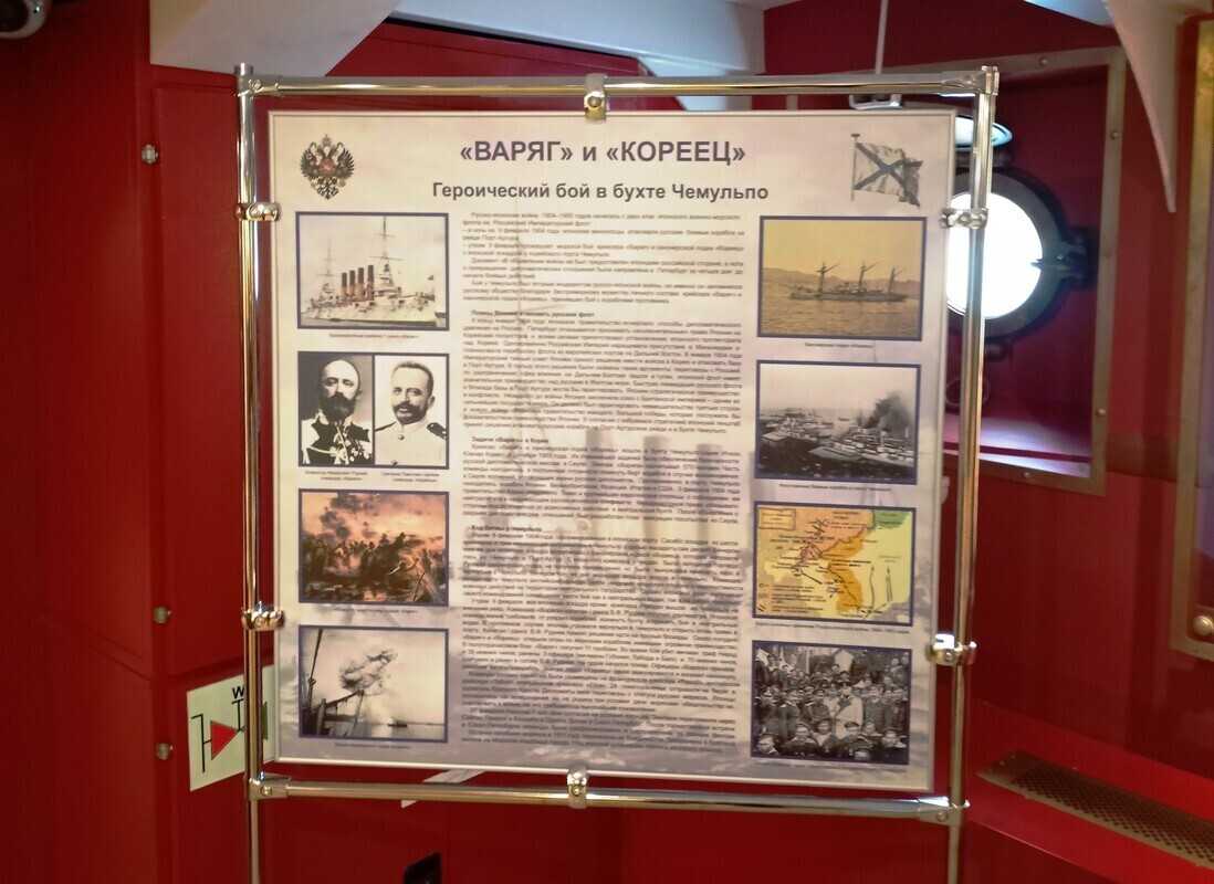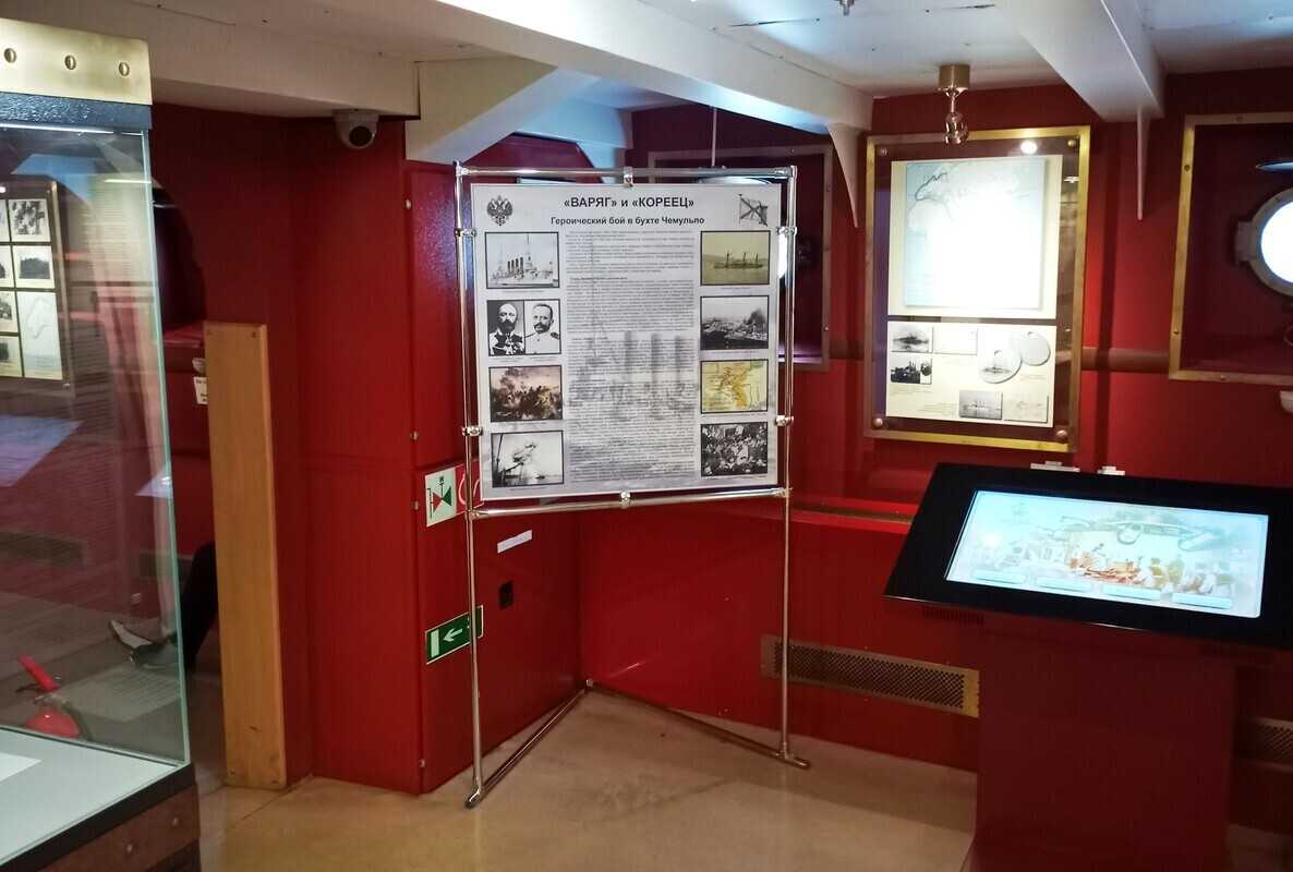 В филиале Центрального военно-морского музея имени императора Петра Великого на крейсере «Аврора» открылась временная электронно-плоскостная выставка «„Варяг” и „Кореец”. Героический бой в бухте Чемульпо».