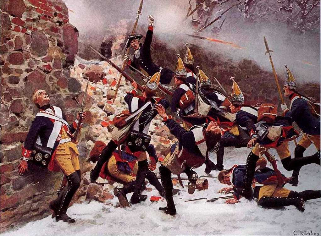 18 июня 1757 года под городом Колином пруссаки вступили в бой с превосходящими силами противника и проиграли сражение. Фридрих был вынужден снять блокаду Праги и спешно отступить в Саксонию.