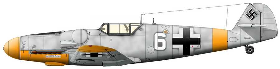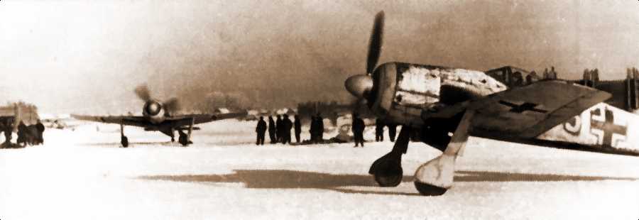По состоянию на конец года в составе 15./JG 51 числилось девять старых и порядком изношенных истребителей Fw 190A-3. В течение января пять из них были либо потеряны, либо пошли на списание, и 24 января эскадрилья впервые за семь месяцев получила новые, а не подержанные самолёты – пятёрку Bf 109G-6. В феврале к ним добавилось ещё девять таких машин, и оставшиеся «Фокке-Вульфы» отправили в тыл. Новые «Мессершмитты» прибывали в белой зимней окраске поверх заводского камуфляжа RLM 74/75/76, а их тактические обозначения и элементы быстрого опознавания были выполнены в том же стиле, что и на Fw 190.