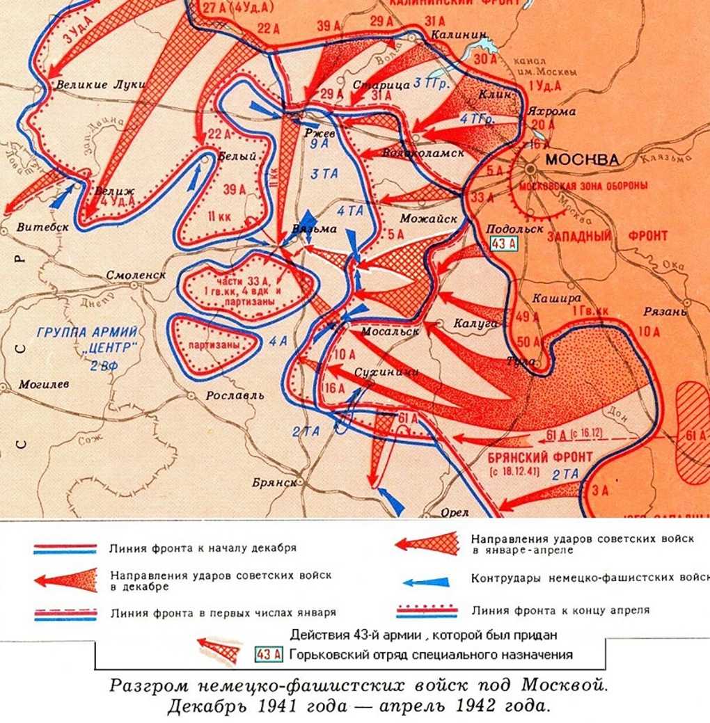 Карта контрнаступления советских войск под Москвой.