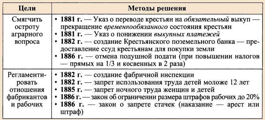 | Открытие крестьянских и дворянских банков | Ограничение прав крестьян |