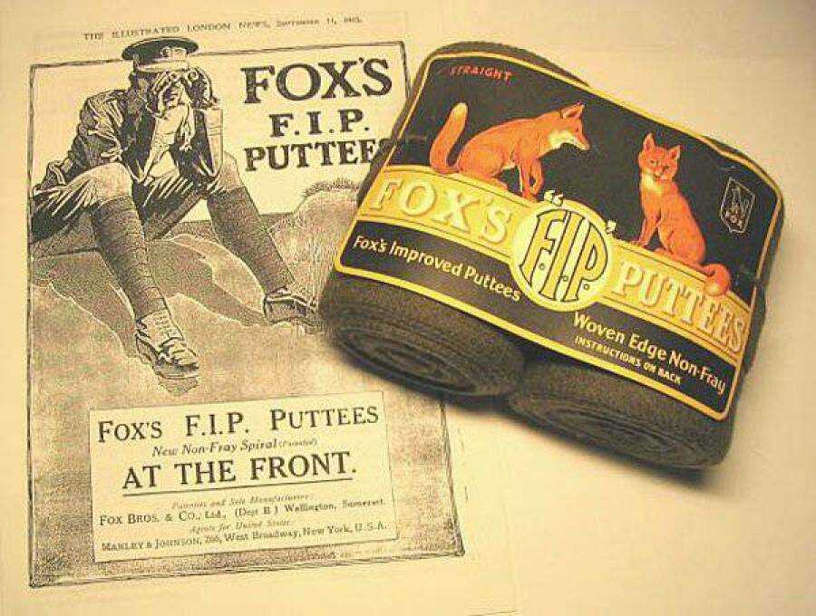 Производство этого нехитрого предмета достигало тогда фантастических объёмов. Например, только одна британская компания Fox Brothers&Co Ltd за годы Первой мировой произвела 12 млн пар обмоток, в развёрнутом состоянии это лента длинной 66 тыс. км — достаточно, чтобы два раза обернуть всё побережье Великобритании.