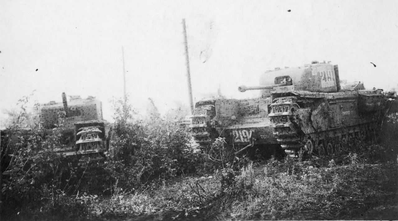 Танки «Черчилль» 36-го гвардейского отдельного танкового полка прорыва Красной Армии на Курской дуге, август 1943 г.