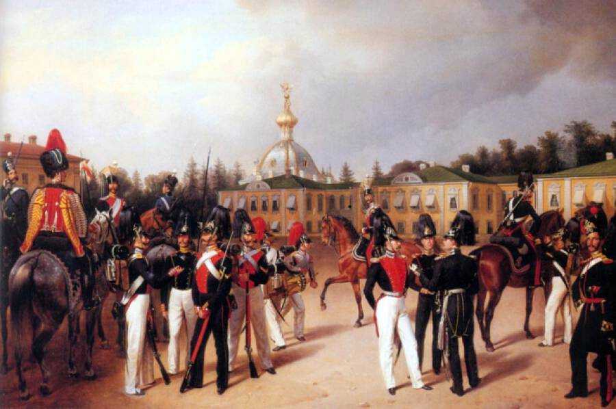 - Петергоф: кавалерийские полки (Лейб-гвардии Конногренадерский, Уланский, Драгунский).